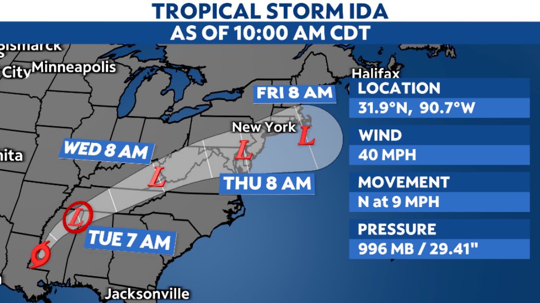 Et, ida was moving north at 9 miles per hour with.